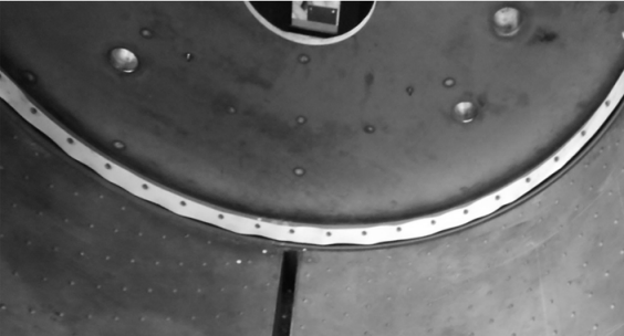 鈦襯兩邊弧板上下分別焊接鈦螺母,上部固定密封條固定板。下部連接鈦襯組件和弧形支架,保證鈦襯組件固定可靠的要求。
